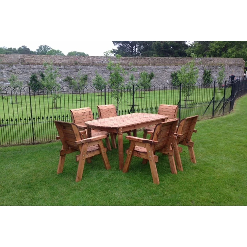 Six traditional chairs and one rectangular table complete with hole for parasol Table dimensions: 1800mm x 950mm Area required: 2900mm x 2450mm