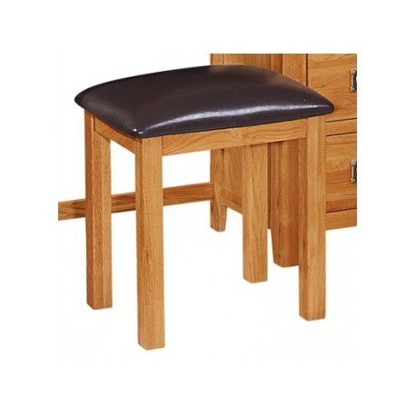 Solid Oak Dressing Stool with brown PU leather seat.