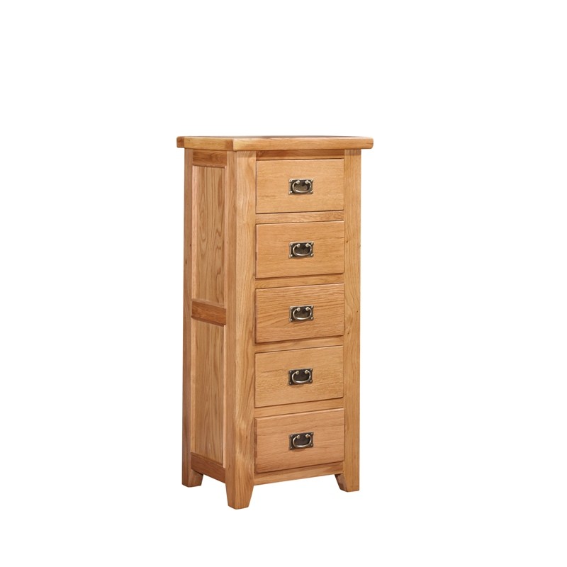 Canterbury Oak furniture is handcrafted from solid white American oak and oak veneers and finished in an easy to maintain hard lacquer which gives it a warm rustic feel. All of the drawers feature solid wood drawer bases and backs with dovetail joints. Our Canterbury Oak furniture range has chunky 50mm thick tops, beading round the side panels and elegant antique brass door and drawer handles. Canterbury Oak furniture has natural imperfections such as knots, shading and grain variation, which is part of the natural beauty and adds authentic character.