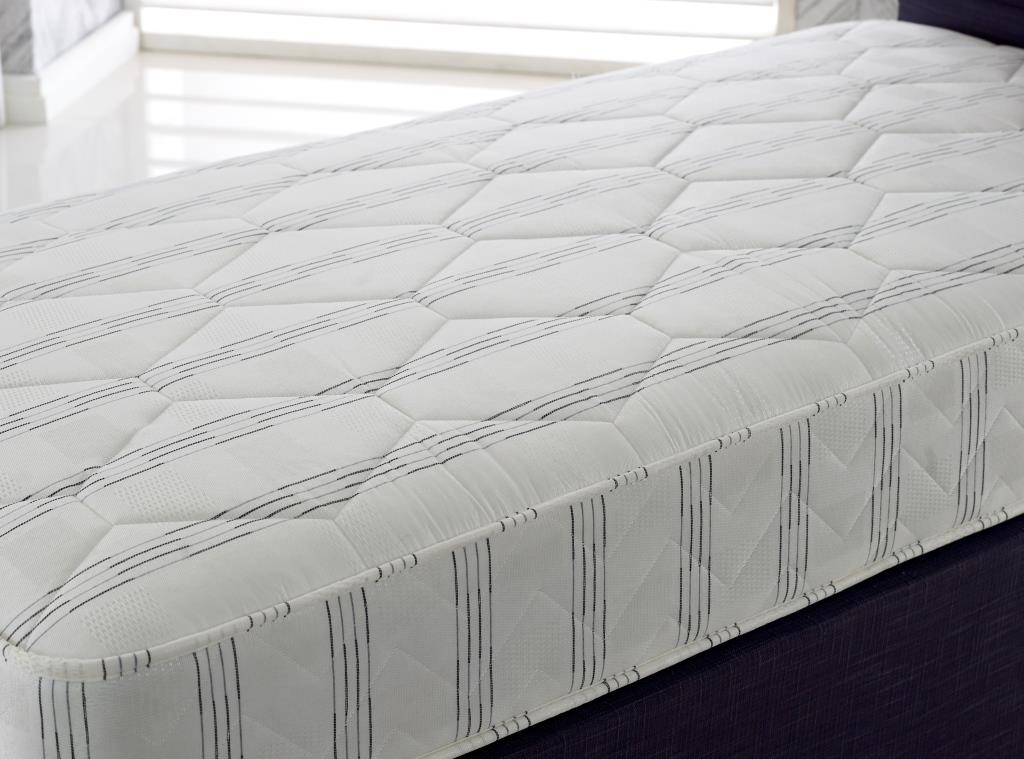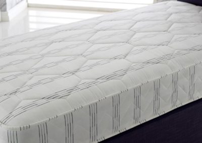 The Spencer Open Coil Mattress features a traditional firm open coil spring system. This is made up of rows of hourglass shaped springs that are linked into one single unit using a spiral wire at the top and bottom.